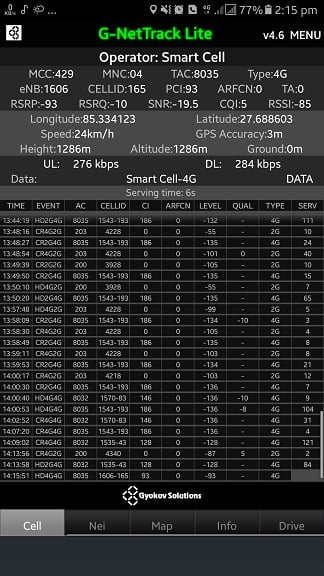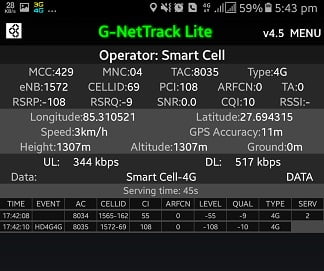 We tested Smart cell 4G speed using Speedtest app, Signal using G-Net track and our own Nepali telecom app. We have the speed test result in different parts of the Kathmandu city, and also the coverage there.