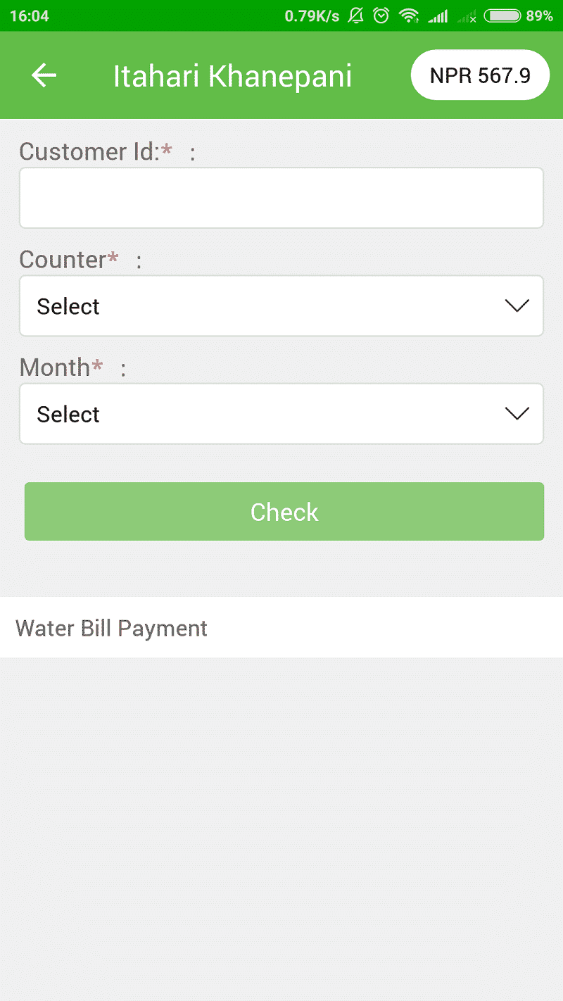 • Then Go to the Khanepani bill payment section in the app or website.