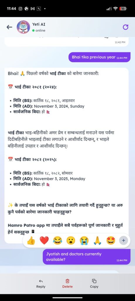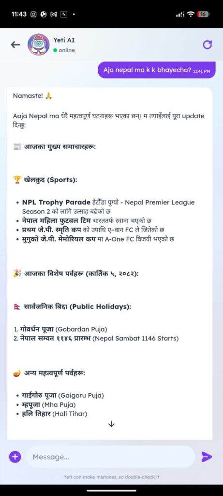 Hamro Patro says that its Yeti AI feature is available on Android only. But it should roll out to iOS users soon. Make sure that you update your app to the latest version to use the feature.