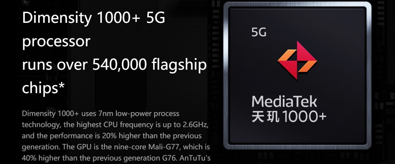 Video: 1080p at 30/120fps, 720p at 30fps - Chipset: Mediatek Dimensity 1000+