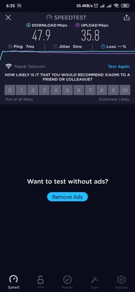 Even if it said 5 Mbps, I never got over 250 kbps due to the link instability. But this fiber internet from Nepal Telecom amazed me. With ping around 80-100ms and that too with consistency, this ISP is best for gaming. If your city has NT FTTH (Fiber internet), I think it’s a no brainer(especially for gamers).