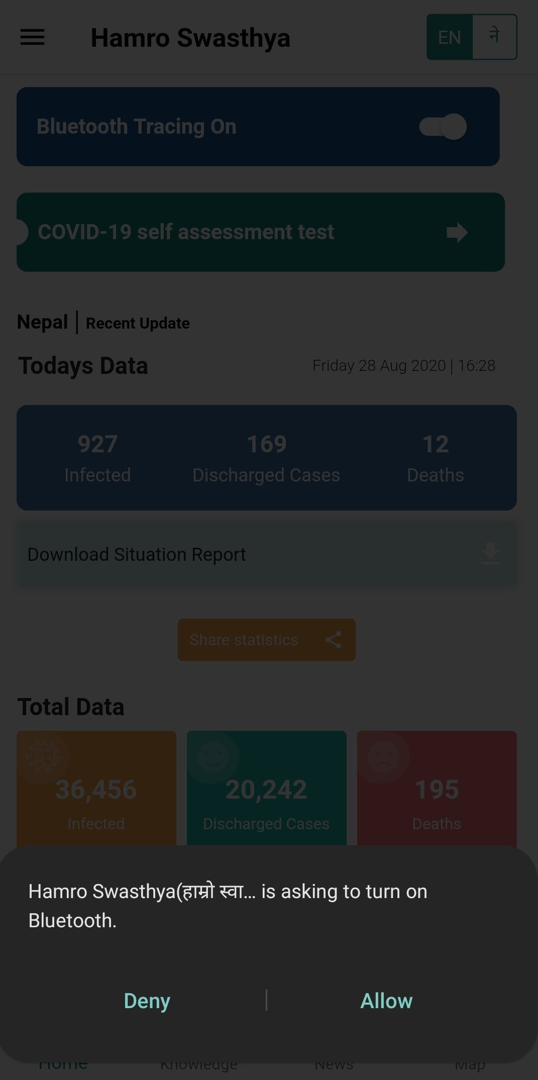 The app utilizes BlueTooth to conduct the tracing by considering the privacy of its users. According to the Ministry of Health and Population, it will help to decrease the hazards of COVID-19 to some extent.
