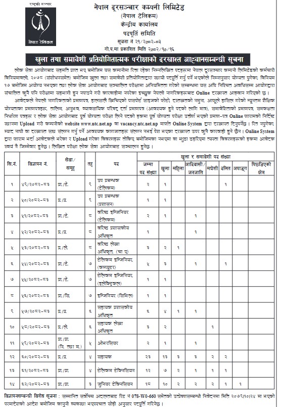 The NTC vacancies are approved by Lok Sewa Ayog (PSC), and the same agency will conduct the examination for the open and inclusive competition.